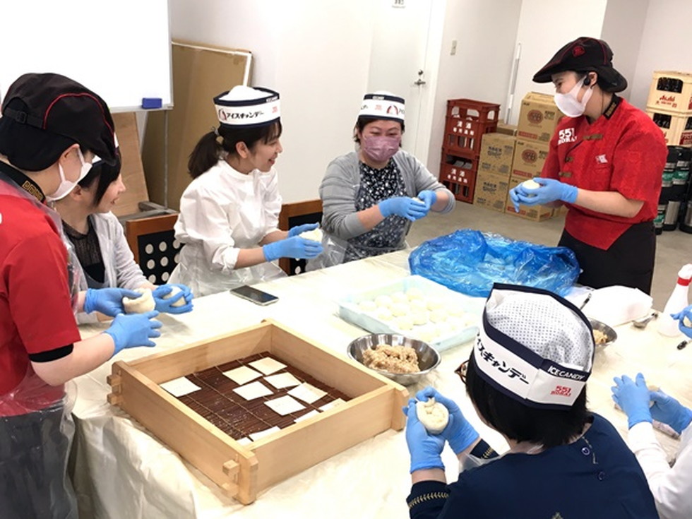 551 no butaman "是一种连哭泣的人都会发笑的大阪特产,其根源在于惠比寿筋路的总店。体验一下老店员的手艺吧,他们自开店以来一直坚持手工制作,用爱心亲手包装每一件商品!
